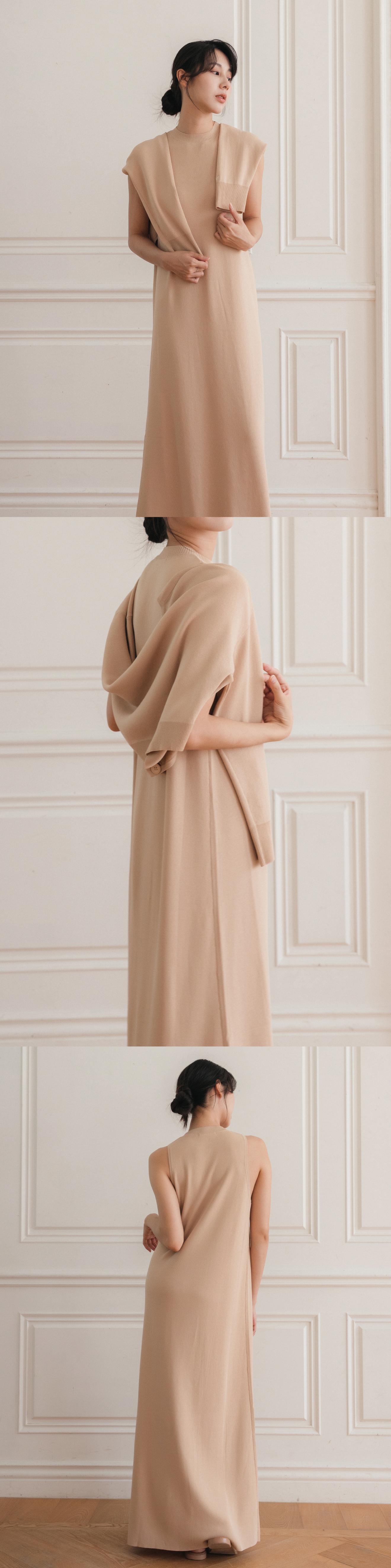 立領針織無袖洋裝