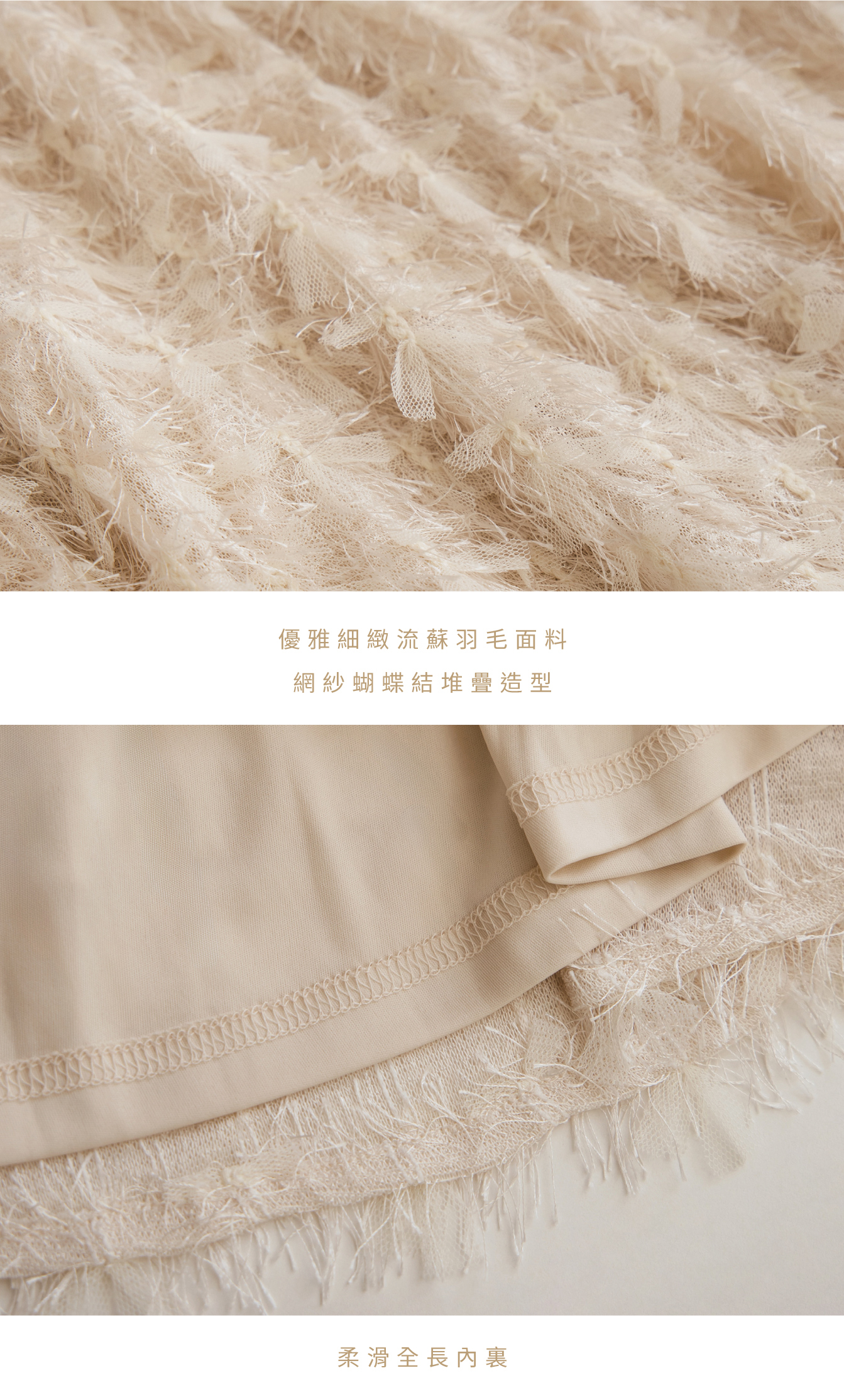 優雅細緻流蘇羽毛面料